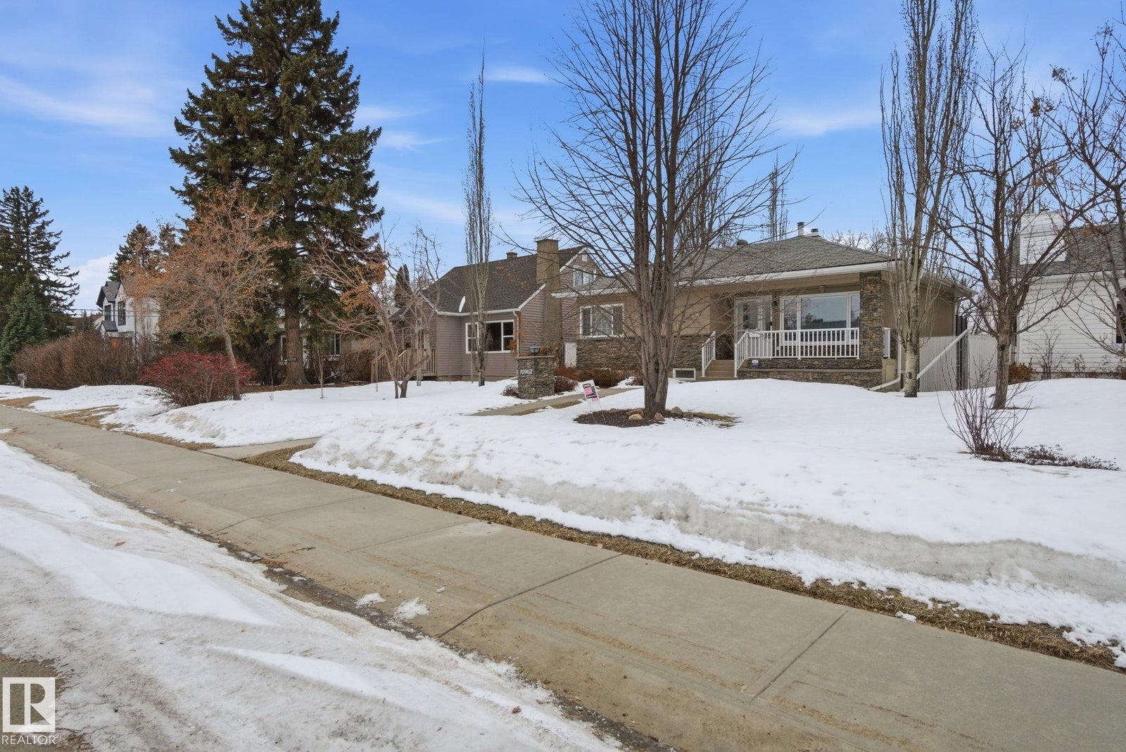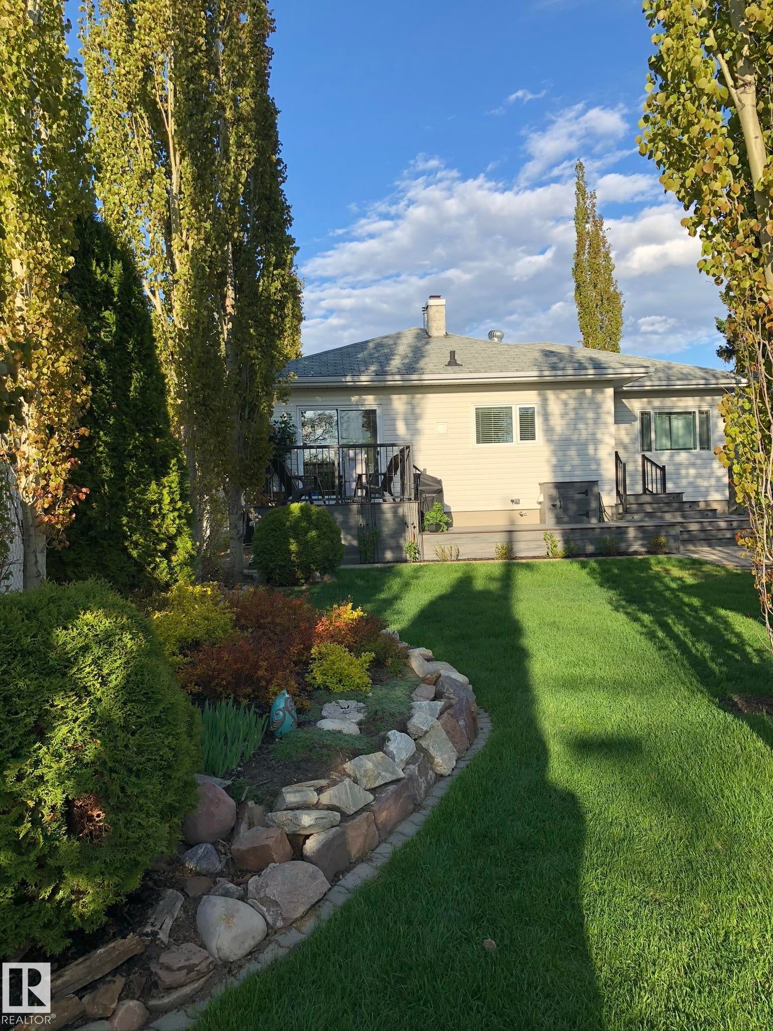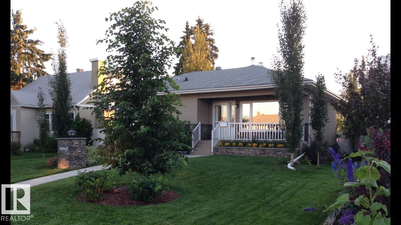 Welcome to this immaculate renovated bungalow with oversized 25'x24' garage and central A/C backing onto to a beautiful off leash dog park! Some of the many recent renovations include paint, plumbing, windows, doors, kitchen including gas range, wine fridge and granite countertops, weeping tile, sump pump, backwater valve, sidewalks, $25000 3 tiered composite deck and upgraded insulation. The bright living room has a feature gas fireplace with storage on each side. Both bathrooms are redone with quartz countertops upstairs and massive shower downstairs! Gorgeous park-like yard with birch, crabapple and red maple trees, cherry and saskatoon shrubs and perennials. Owner has meticulously cared for this home for 33 years! The fabulous location is just minutes from the Ice District, a short walk to the vibrant 124th Street corridor filled with boutique shops and cozy cafés and only seconds from a spray park and community center. This home offers a rare blend of luxury, comfort, and convenience! Act fast!